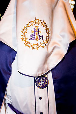La hermandad comenzó con 60 hermanos y en la actualidad la conforman 507 entre hombres y mujeres, contando con banda de tambores y cornetas propia. Su hábito, confeccionado en tela de raso, está compuesto de capuchón y túnica blanca con botonadura, cíngulo, capa y sandalias de color morado, guantes y calcetines blancos; en la esclavina del capuchón y en la capa, a la altura del hombro izquierdo, va bordado en color marrón, sobre fondo blanco, el emblema de la hermandad, que consiste en una cruz circundada por las letras S H M todo ello inscrito en una corona de espinas; se alumbran con cirio eléctrico. Celebraban inicialmente su fiesta el primer domingo del mes de julio, haciéndolo actualmente el quinto domingo de cuaresma.